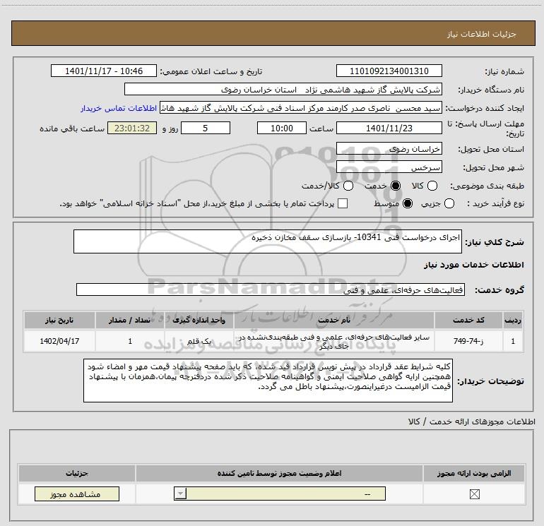 شرح کلی نیاز: اجرای درخواست فنی 10341- بازسازی سقف مخازن ذخیره
