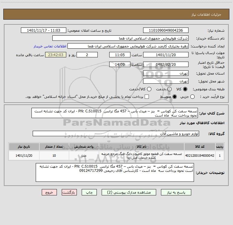 نام دستگاه خریدار:شرکت هواپیمایی جمهوری اسلامی ایران هما