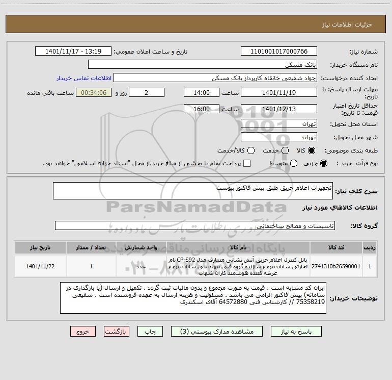 شرح کلی نیاز: تجهیزات اعلام حریق طبق پیش فاکتور پیوست