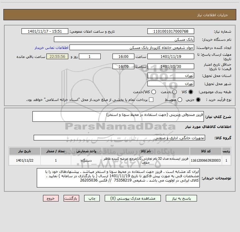 استعلام فریزر صندوقی ویترینی (جهت استفاده در محیط سونا و استخر), استعلام فریزر صندوقی ویترینی (جهت استفاده در محیط سونا و استخر)