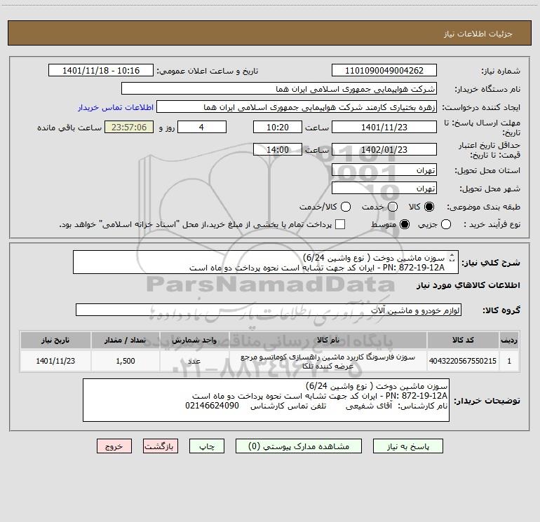 PN: 872-19-12A - ایران کد جهت تشابه است نحوه پرداخت دو ماه است