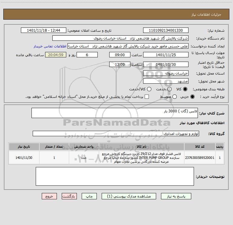 نام دستگاه خریدار:شرکت پالایش گاز شهید هاشمی نژاد استان خراسان رضوی
