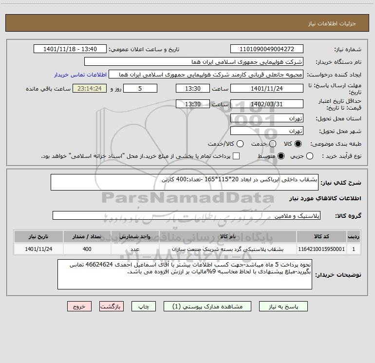 نام دستگاه خریدار:شرکت هواپیمایی جمهوری اسلامی ایران هما