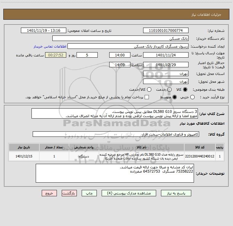 شرح کلی نیاز: 3 دستگاه سرور DL580 G10 مطابق پیش نویس پیوست.