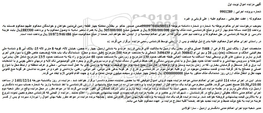 شماره پرونده اجرایی : 9901289
