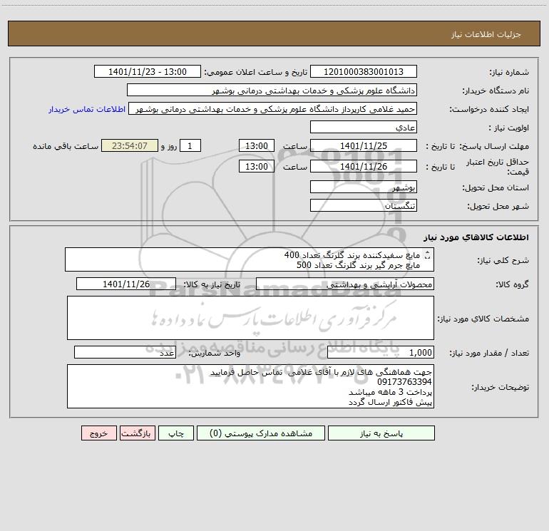 نام دستگاه خریدار:دانشگاه علوم پزشکی و خدمات بهداشتی درمانی بوشهر