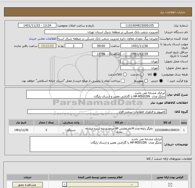 نام دستگاه خریدار:مدیریت شعب بانک مسکن در منطقه شرق استان تهران