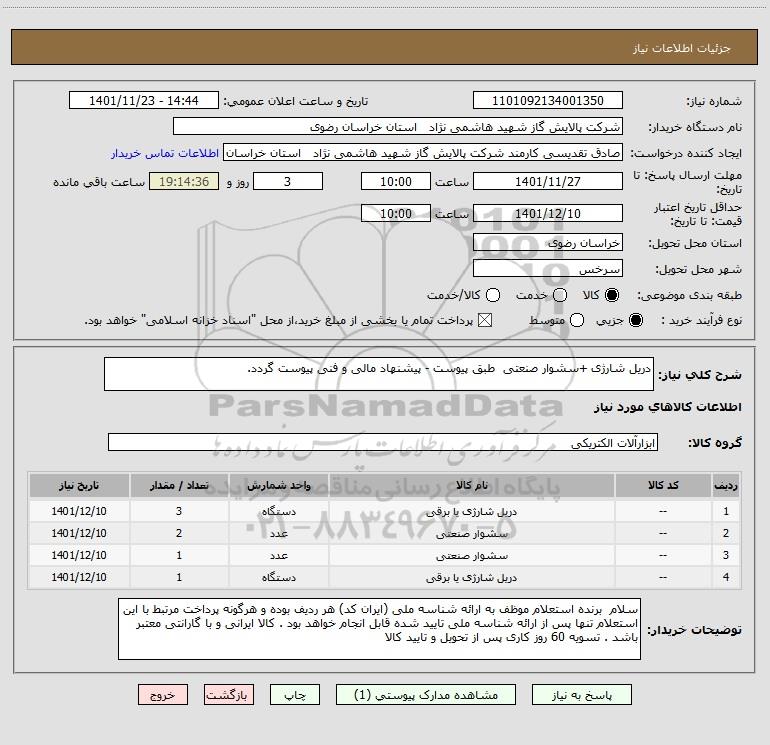 نام دستگاه خریدار:شرکت پالایش گاز شهید هاشمی نژاد استان خراسان رضوی