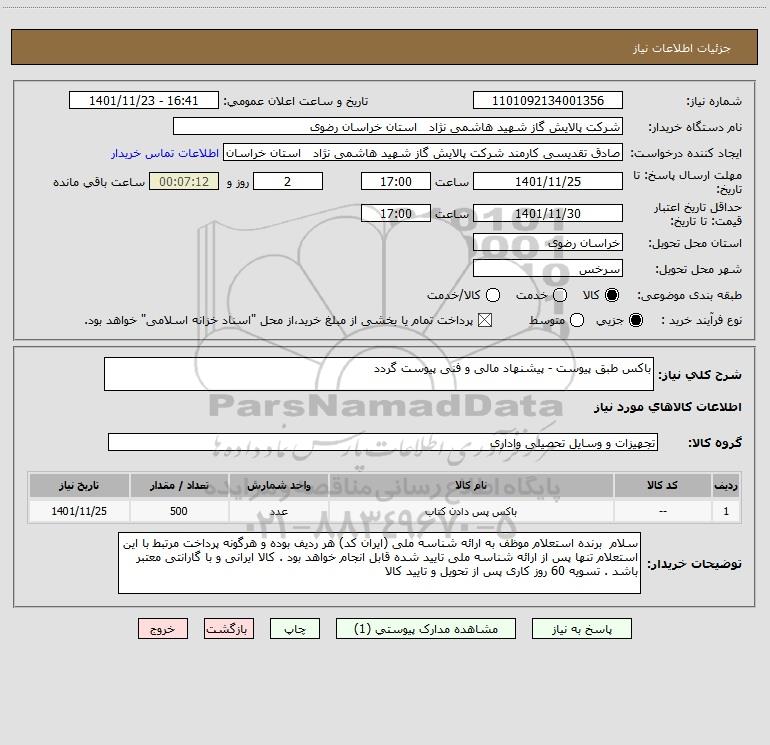 شرح کلی نیاز: باکس طبق پیوست - پیشنهاد مالی و فنی پیوست گردد
