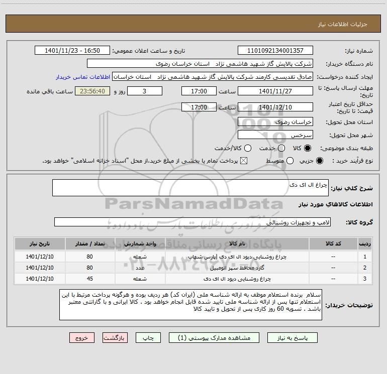 نام دستگاه خریدار:شرکت پالایش گاز شهید هاشمی نژاد استان خراسان رضوی