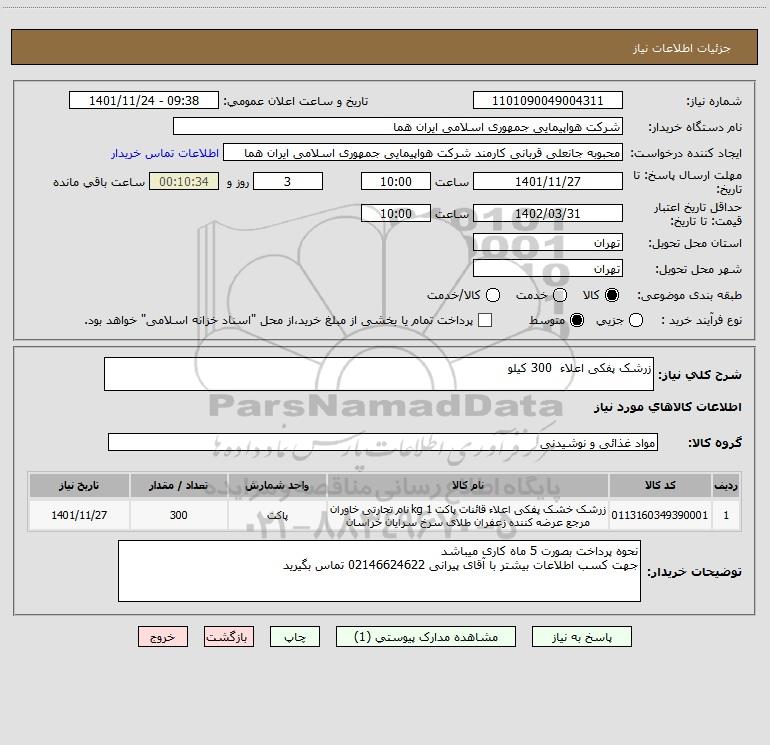 نام دستگاه خریدار:شرکت هواپیمایی جمهوری اسلامی ایران هما