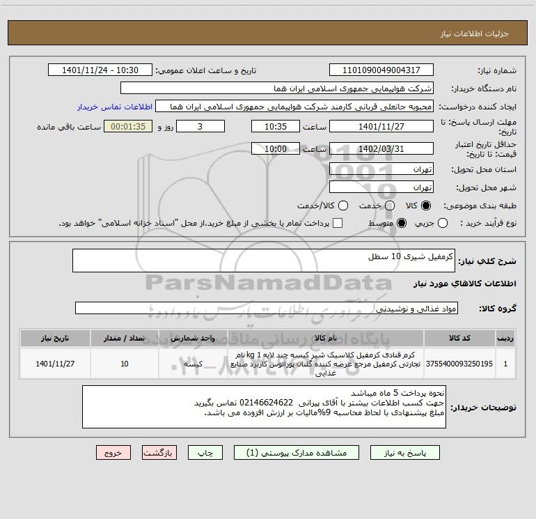 نام دستگاه خریدار:شرکت هواپیمایی جمهوری اسلامی ایران هما