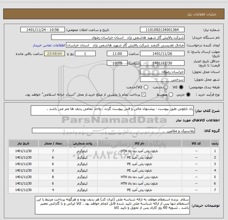 نام دستگاه خریدار:شرکت پالایش گاز شهید هاشمی نژاد استان خراسان رضوی