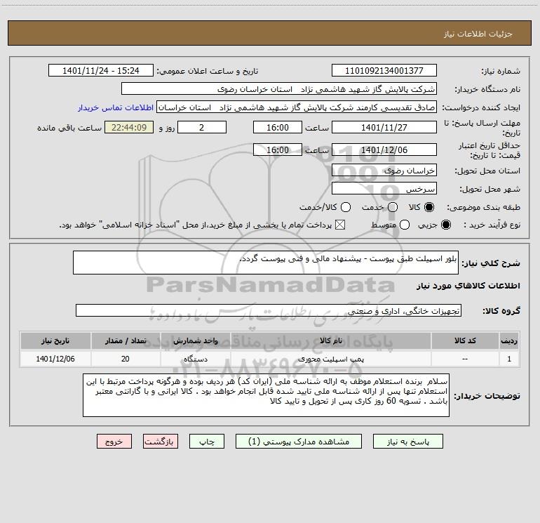 نام دستگاه خریدار:شرکت پالایش گاز شهید هاشمی نژاد استان خراسان رضوی