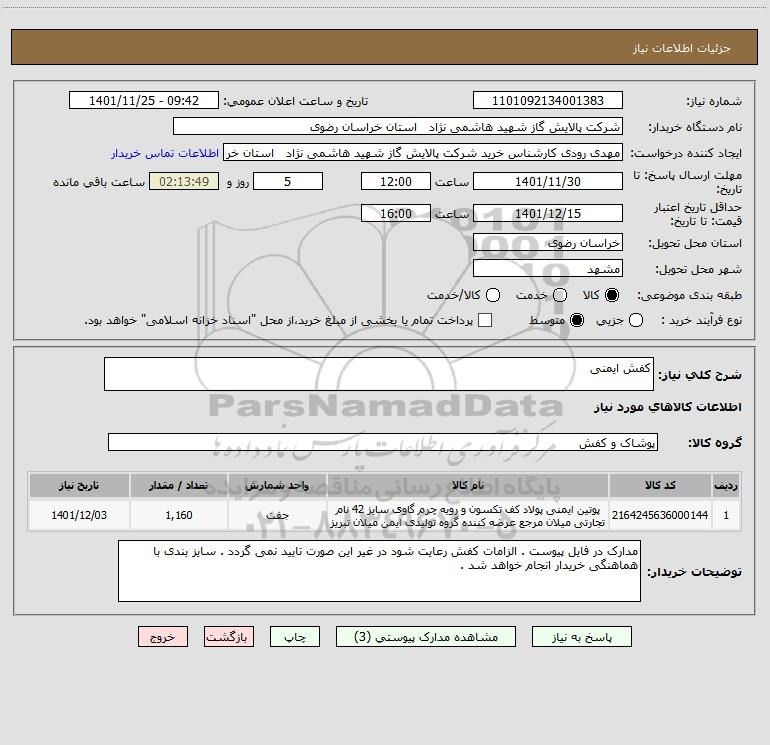 نام دستگاه خریدار:شرکت پالایش گاز شهید هاشمی نژاد استان خراسان رضوی