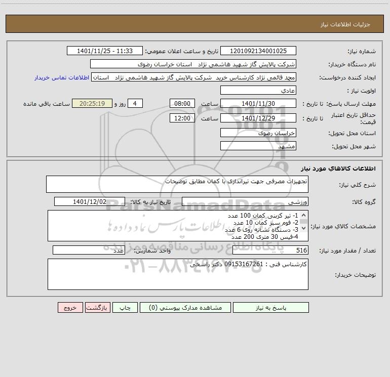 نام دستگاه خریدار:شرکت پالایش گاز شهید هاشمی نژاد استان خراسان رضوی