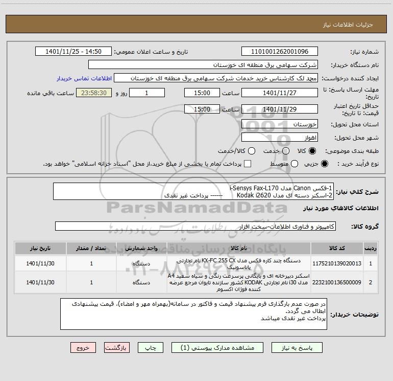 شرح کلی نیاز: 1-فکس Canon مدل i-Sensys Fax-L170