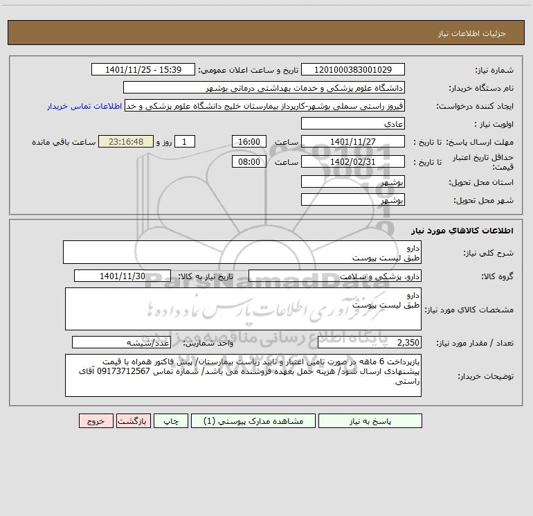نام دستگاه خریدار:دانشگاه علوم پزشکی و خدمات بهداشتی درمانی بوشهر