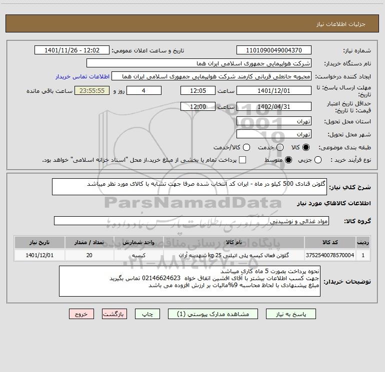 نام دستگاه خریدار:شرکت هواپیمایی جمهوری اسلامی ایران هما