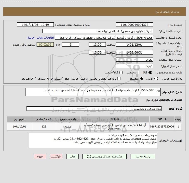 نام دستگاه خریدار:شرکت هواپیمایی جمهوری اسلامی ایران هما