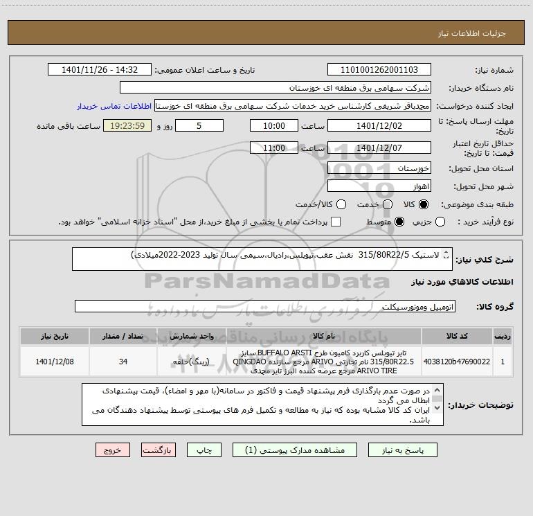 نام دستگاه خریدار:شرکت سهامی برق منطقه ای خوزستان