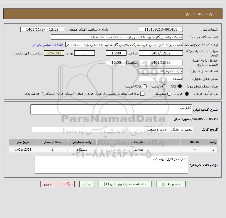 نام دستگاه خریدار:شرکت پالایش گاز شهید هاشمی نژاد استان خراسان رضوی