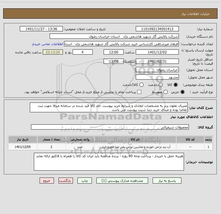 نام دستگاه خریدار:شرکت پالایش گاز شهید هاشمی نژاد استان خراسان رضوی