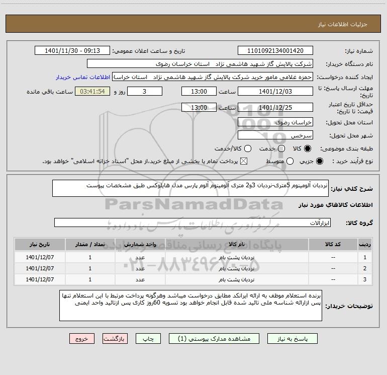 نام دستگاه خریدار:شرکت پالایش گاز شهید هاشمی نژاد استان خراسان رضوی