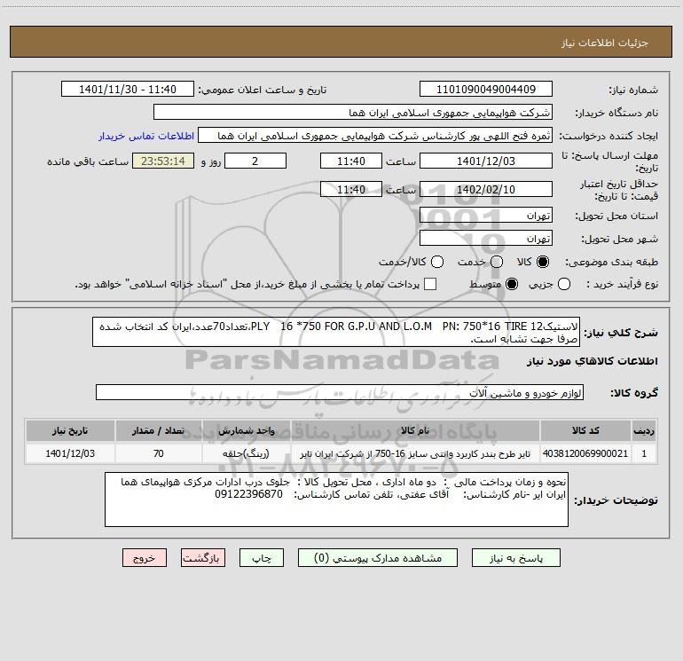 استعلام لاستیک12 PLY 16 *750 FOR G.P.U AND L.O.M PN: 750*16 TIRE،تعداد70عدد،ایران کد انتخاب شده صرفا جهت تشابه است., استعلام لاستیک12 PLY 16 *750 FOR G.P.U AND L.O.M PN: 750*16 TIRE،تعداد70عدد،ایران کد انتخاب شده صرفا جهت تشابه است.