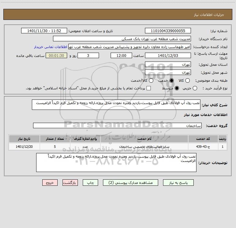 نام دستگاه خریدار:مدیریت شعب منطقه غرب تهران بانک مسکن