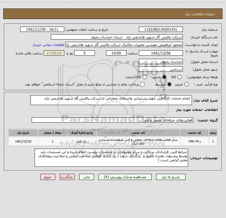 نام دستگاه خریدار:شرکت پالایش گاز شهید هاشمی نژاد استان خراسان رضوی