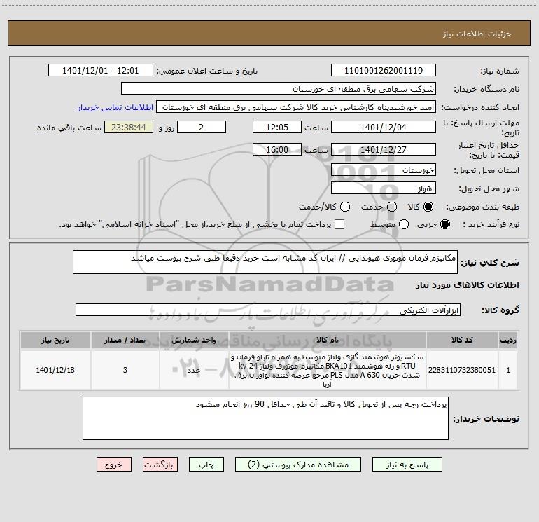 نام دستگاه خریدار:شرکت سهامی برق منطقه ای خوزستان