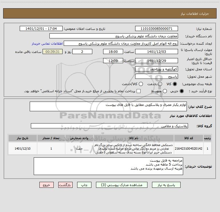 نام دستگاه خریدار:معاونت درمان دانشگاه علوم پزشکی یاسوج