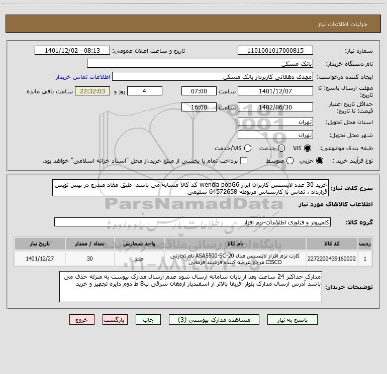 استعلام خرید 30 عدد لایسنس کاربران ابزار wendia pobG6 کد کالا مشابه می باشد طبق مفاد مندرج در پیش نویس قرارداد ، تماس با کارشناس مربوطه 64572658 سلیمی, استعلام خرید 30 عدد لایسنس کاربران ابزار wendia pobG6 کد کالا مشابه می باشد طبق مفاد مندرج در پیش نویس قرارداد ، تماس با کارشناس مربوطه 64572658 سلیمی