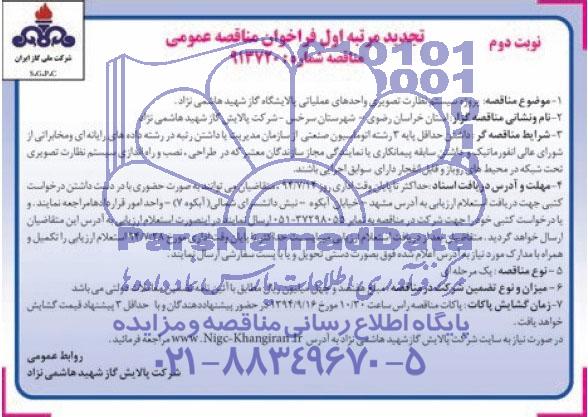 نام و نشانی مناقصه گزار: استان خراسان رضوی، شهرستان سرخس، شرکت پالایش گاز شهید هاشمی نژاد