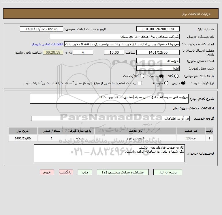 شرح کلی نیاز: بروزرسانی سیستم جامع مالی سپند(مطابق اسناد پیوست)