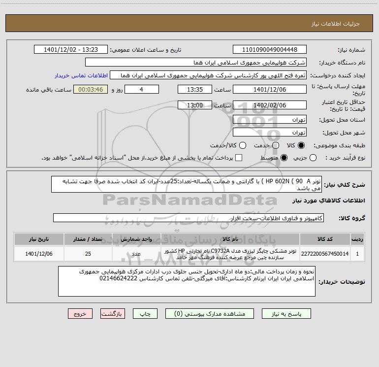 نام دستگاه خریدار:شرکت هواپیمایی جمهوری اسلامی ایران هما
