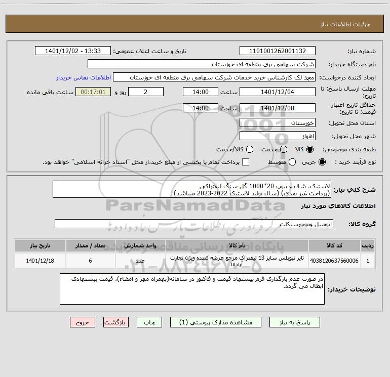 نام دستگاه خریدار:شرکت سهامی برق منطقه ای خوزستان