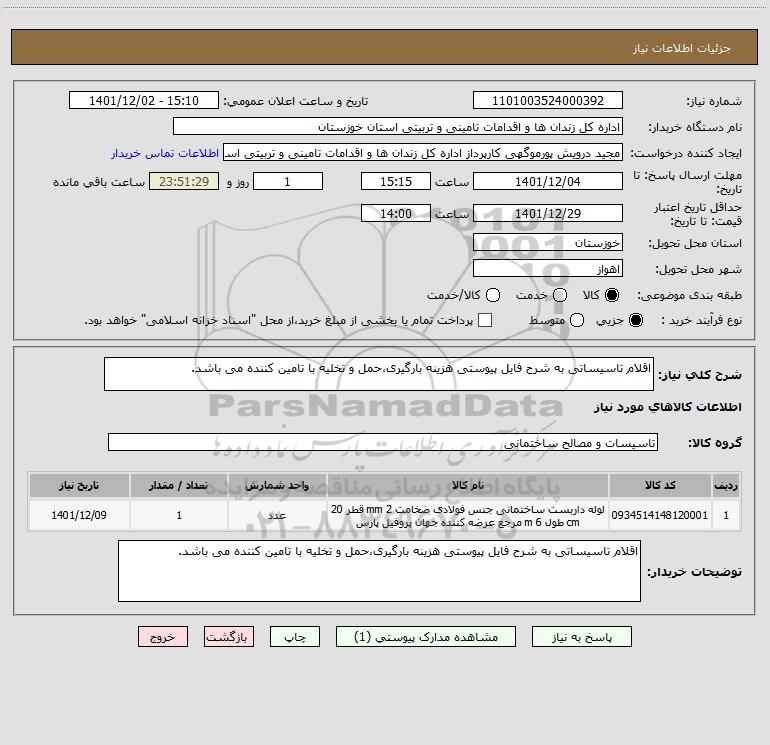 نام دستگاه خریدار:اداره کل زندان ها و اقدامات تامینی و تربیتی استان خوزستان