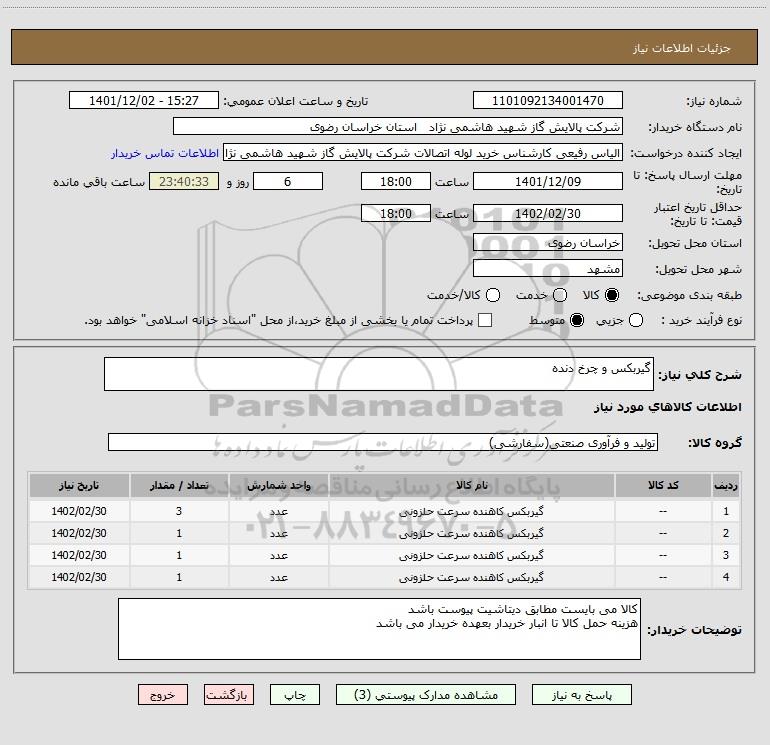 نام دستگاه خریدار:شرکت پالایش گاز شهید هاشمی نژاد استان خراسان رضوی