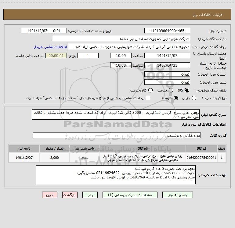 نام دستگاه خریدار:شرکت هواپیمایی جمهوری اسلامی ایران هما