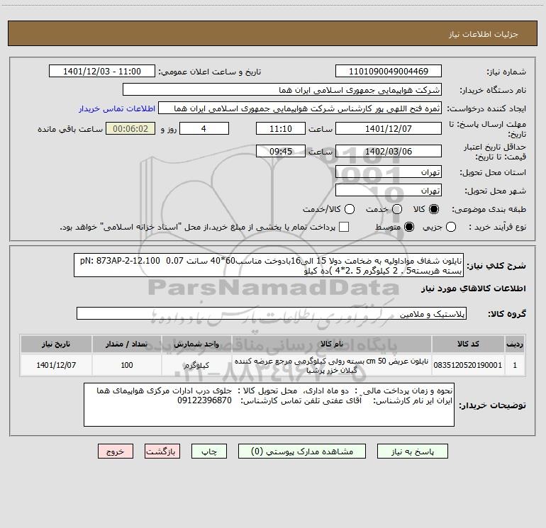 نام دستگاه خریدار:شرکت هواپیمایی جمهوری اسلامی ایران هما