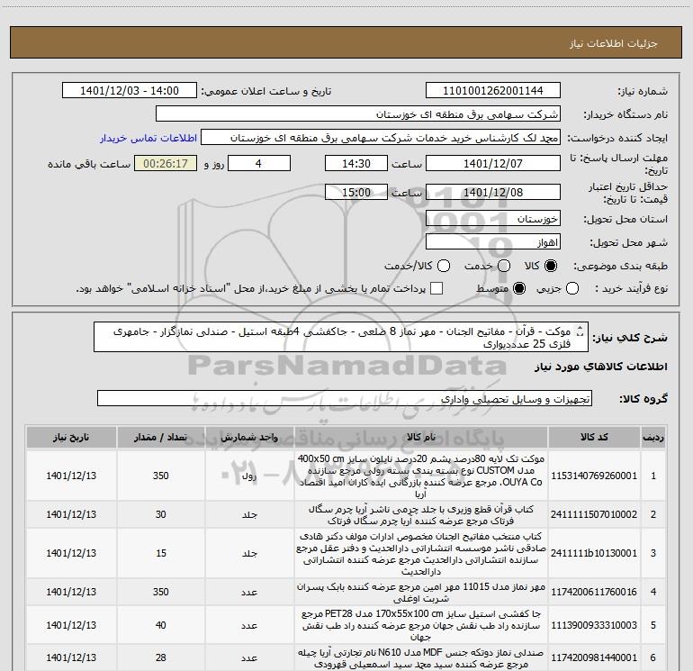 نام دستگاه خریدار:شرکت سهامی برق منطقه ای خوزستان
