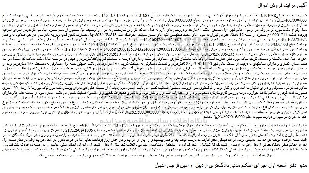 1 مزایده فروش تعدادی از املاک 9816783 1404/08/17 new special payed سایر