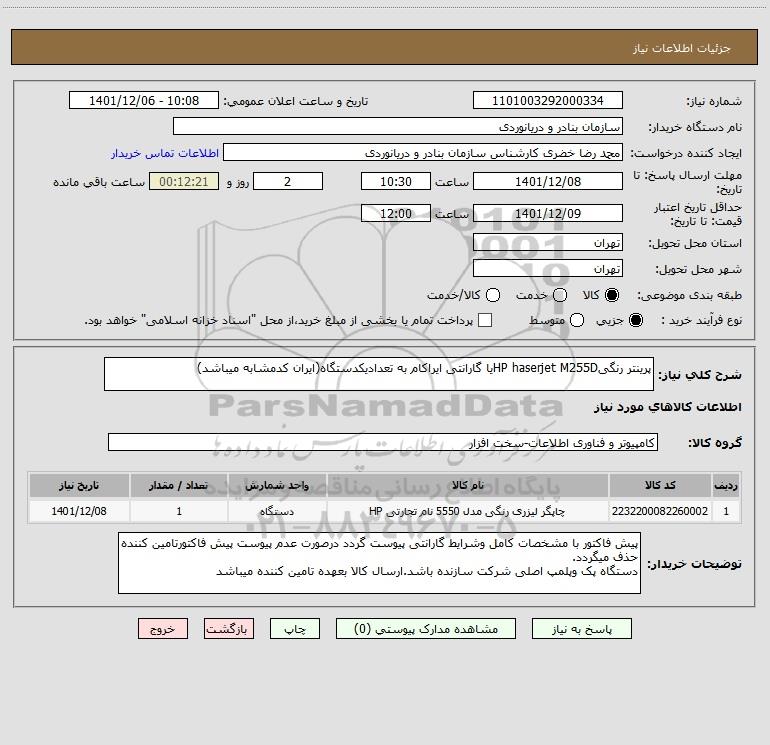 شرح کلی نیاز: پرینتر رنگیHP haserjet M255Dیا گارانتی ایراکام به تعدادیکدستگاه(ایران کدمشابه میباشد)