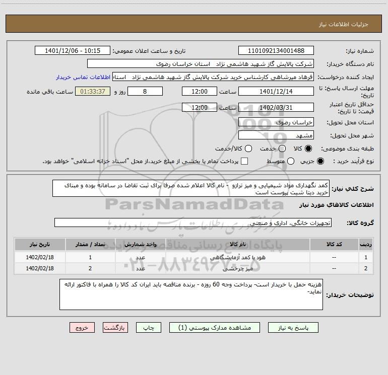 نام دستگاه خریدار:شرکت پالایش گاز شهید هاشمی نژاد استان خراسان رضوی