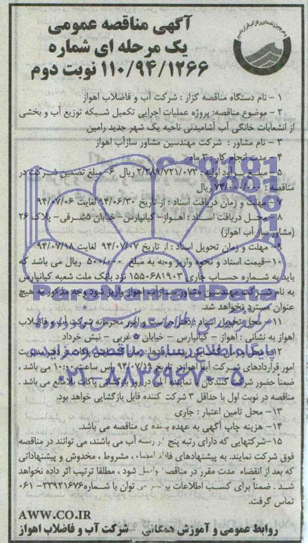 محل دریافت اسناد: اهواز، کیانپارس، خیابان 5 شرقی، پلاک 26 (مشاور ساز آب اهواز)