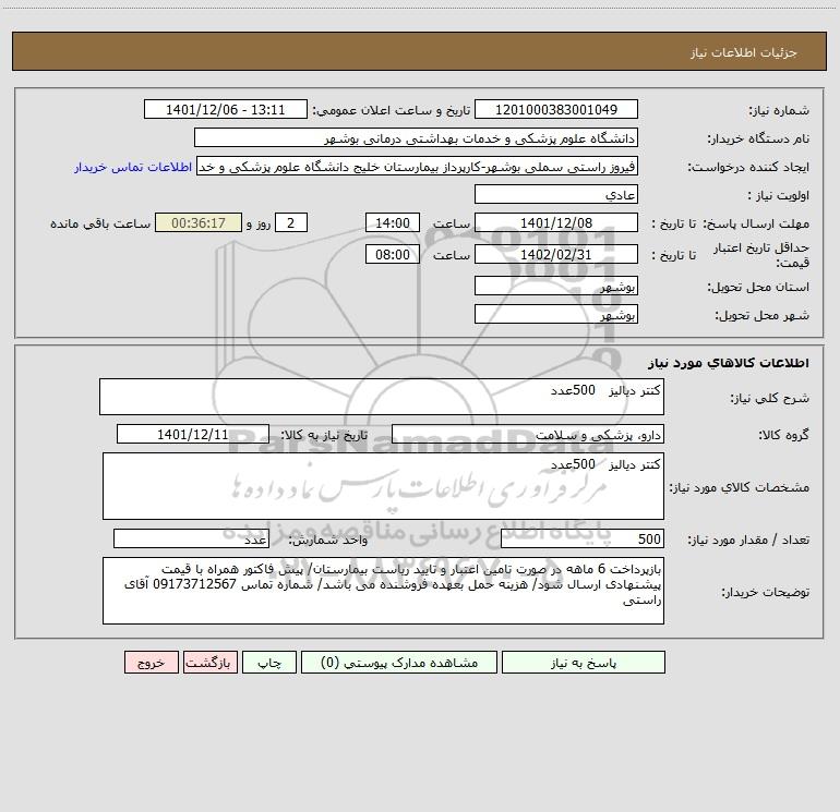 نام دستگاه خریدار:دانشگاه علوم پزشکی و خدمات بهداشتی درمانی بوشهر
