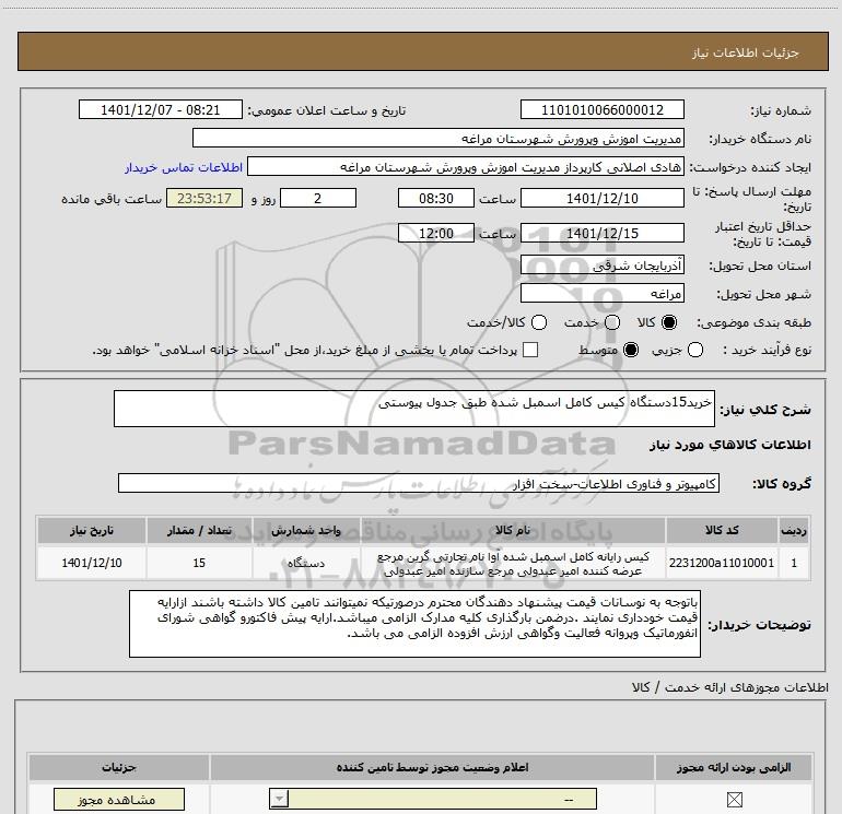 نام دستگاه خریدار:مدیریت اموزش وپرورش شهرستان مراغه