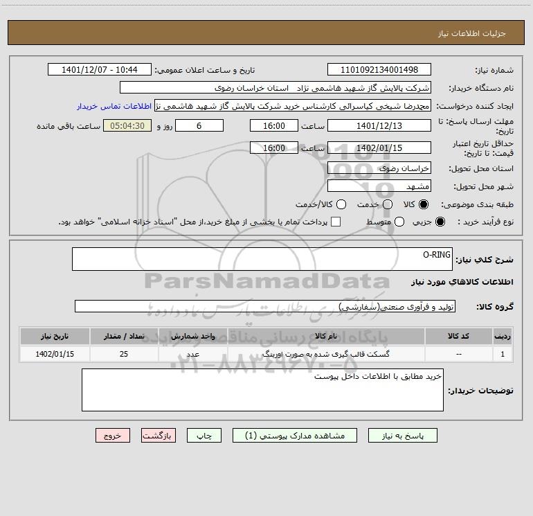 نام دستگاه خریدار:شرکت پالایش گاز شهید هاشمی نژاد استان خراسان رضوی